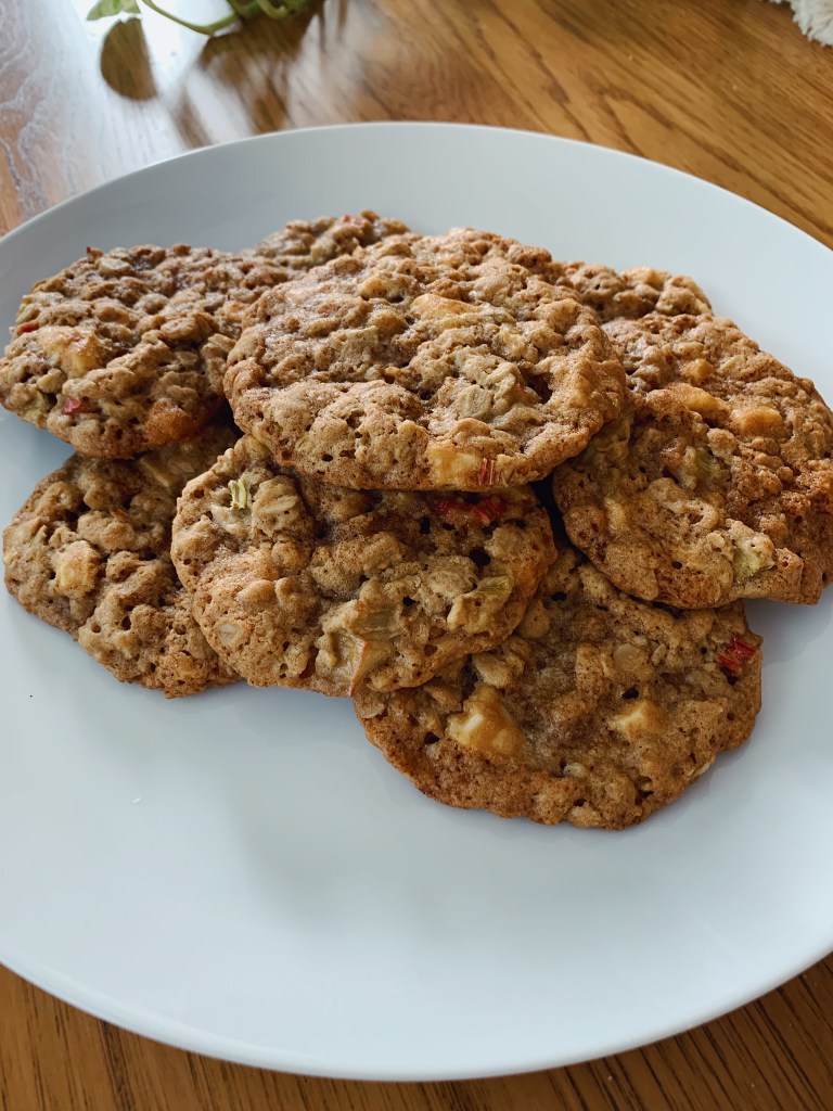 If you know me in real life, you know I love Rihanna. And since “Pon De Replay” was Rihanna’s first single, I thought it was only fitting to name my first recipe on Home Court Bakes after the iconic song. So here are my Pon de Rhubarb Oatmeal White Chocolate Cookies.