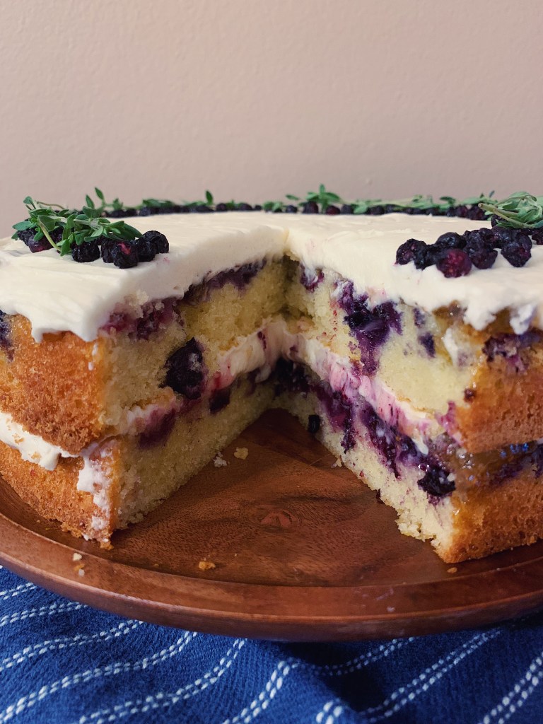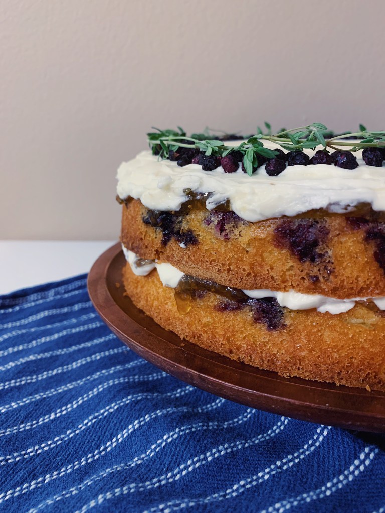 The fresh blueberries work perfectly with the hint of cardamom in the cake as well as the fig jam topping. And who doesn’t love cream cheese frosting?! I could eat cream cheese frosting on just about anything, but the creaminess and tanginess goes especially well with the other flavors in this cake.