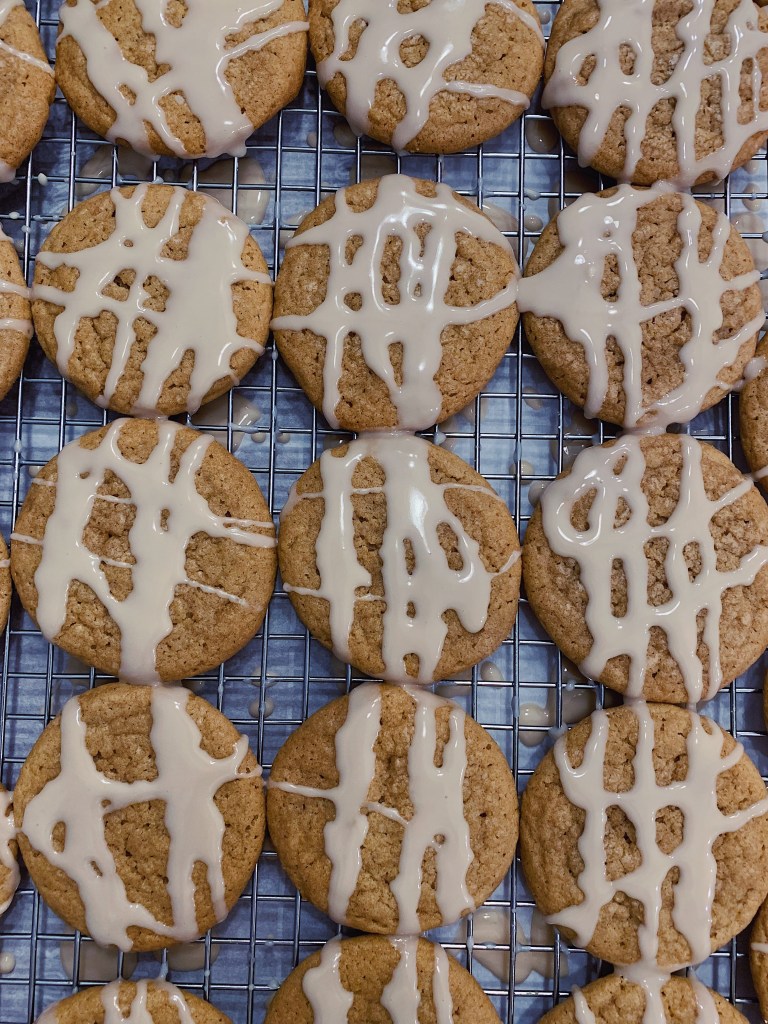 - Once the cookies are cooled completely, drizzle the glaze over the cookies. Feel free to add as a much or as little glaze as you like.