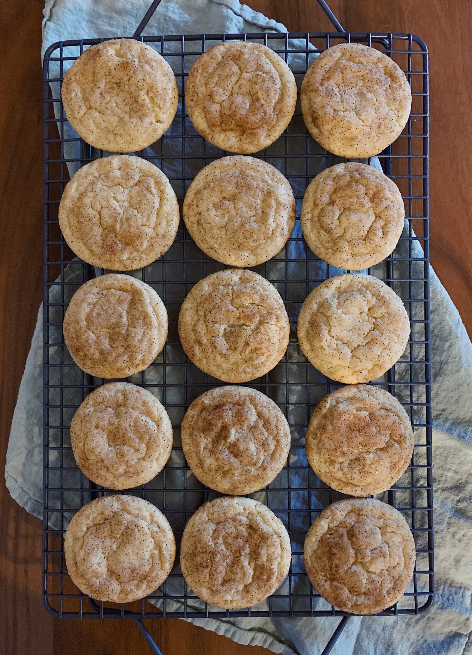 - Combine the remaining cane sugar and cinnamon in a small bowl. Roll each ball in the cinnamon-sugar mixture and then place on a baking sheet lined with parchment paper a few inches apart. Bake for 12 minutes (or until the sides start to firm and tops begin to crack). Depending on how your oven cooks, you may want to rotate the cookie sheet 180° halfway through to ensure your cookies are evenly cooked.